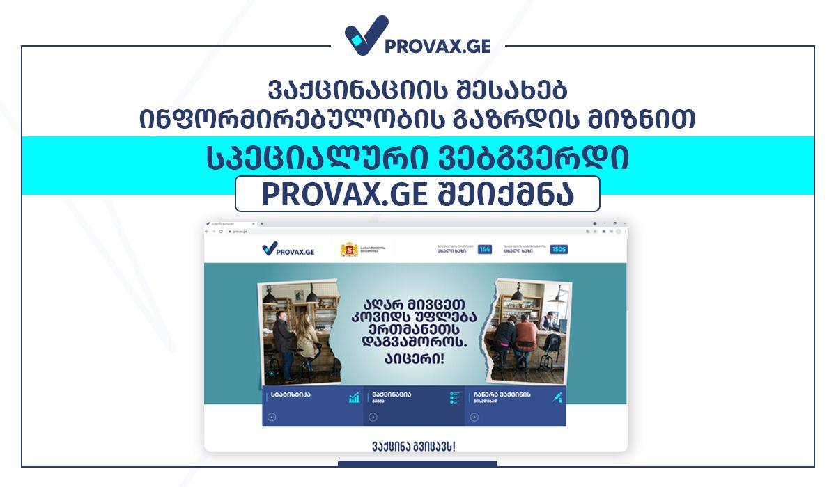 ვაქცინაციის შესახებ ინფორმირებულობის გაზრდის მიზნით, საქართველოს მთავრობამ სპეციალური ვებ საიტი https://Provax.ge შექმნა.